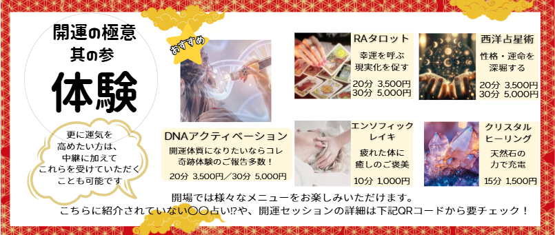 **開運の扉で体験できる「開運の極意」**をくわしく紹介します。